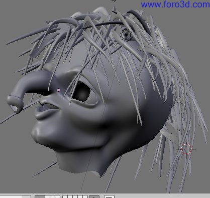 Una vez que tenemos algo parecido a esto, vamos a seleccionar un cara y extrudir a gusto para hacer el pelo, es solo cuestión de extrudir y escalar, y acomodar. No van a necesitar más teclas que (s) (e) (g) (r).