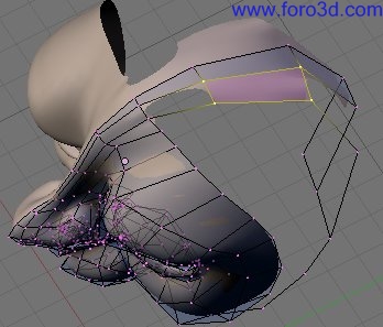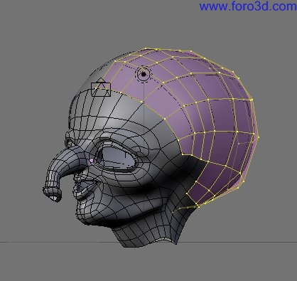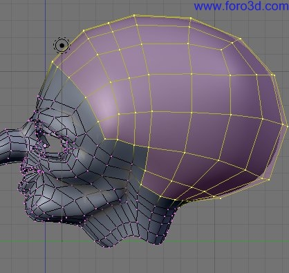 Ahora lo que voy a hacer es modelar el pelo. Esto es fácil solo tenemos que entrar en modo edición al modelo de la cabeza, y seleccionar estos vértices.