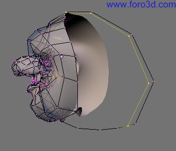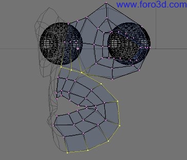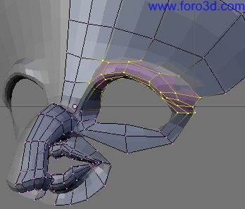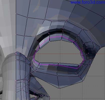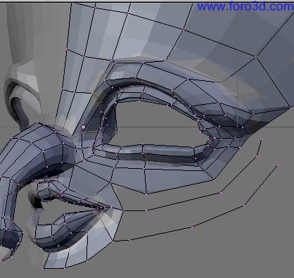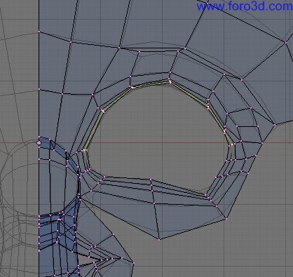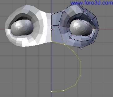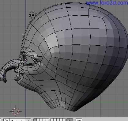 Y ahora, desde la vista lateral, movemos un poco hacia afuera los vértices, también acomódenlos un poco, y listo el parpado.