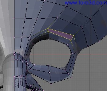 Seleccionamos estos vértices y borramos, luego extrudimos para adentro y creamos las caras, tal como hicimos con las cejas.