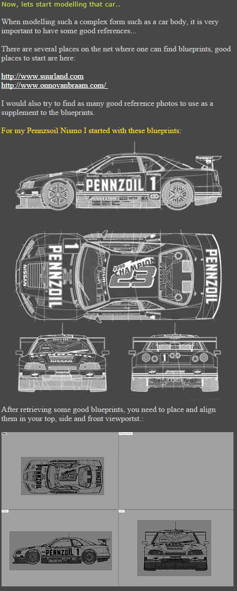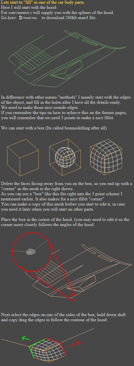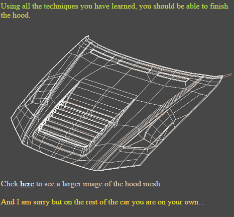 Mars en el mensajes de jaca te puse un buen enlace sobre modelado de coches y o no lo viste o no le hiciste ni caso. Saludos.