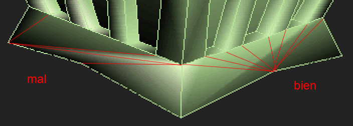 A muchas gracias a los dos por contestar, ahora ya entiendo por que me salen esas arrugas, entonces debo de hacer polígonos de 4 lados, aunque eso suponga un mayor número de polígonos y sean innecesarios excepto para evitar las arrugas ¿no? Bueno pues mañana os enseñare más progresos.