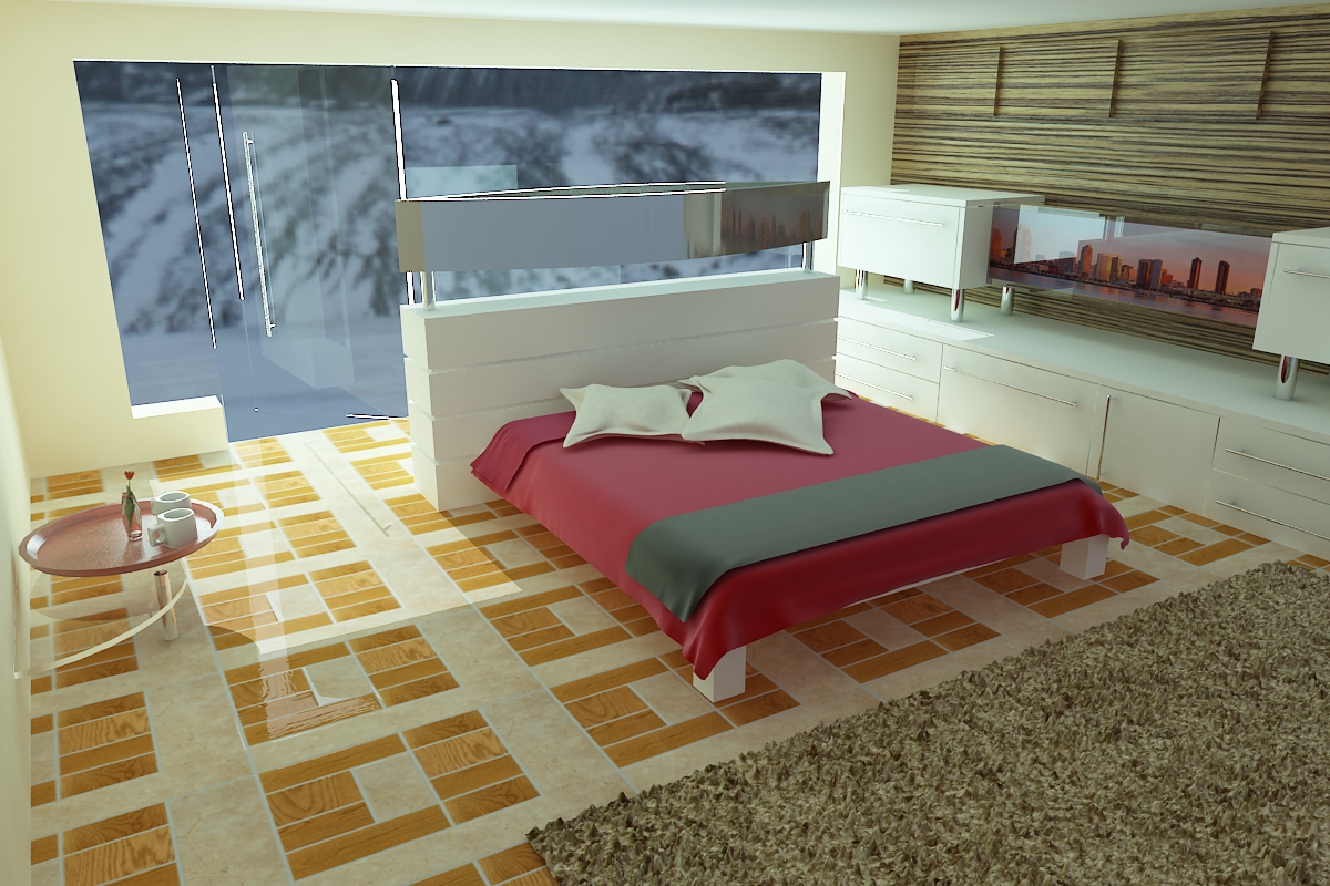 Buenas, pues estaba trabajando en un nuevo escenario, en esta ocasión un dormitorio. Bueno decir que tiene muchos errors y aún faltan cosas en la escena (es lógico, está en proceso eje).