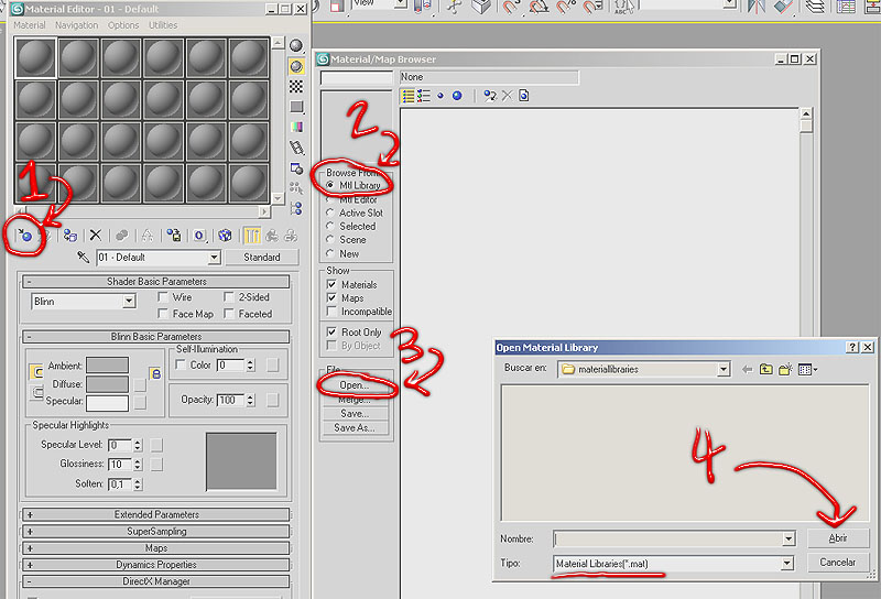 Tengo el 3dsMax 2008, entonces supongo que, ese bendito archivo va en la carpeta materiallibraries, la cosa es que no sé cómo usar el archivo de material, para que me apresca en la lista de materiales del 3dsMax.
