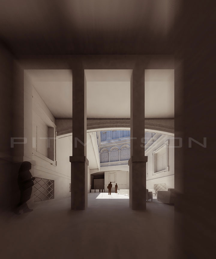 * como no sabía cómo iba a acabar todo aquello me fui modelando el exterior del edificio y el patio por si acaso, sin planos, y con una cinta métrica que me fui para, allá un día, perra vida.