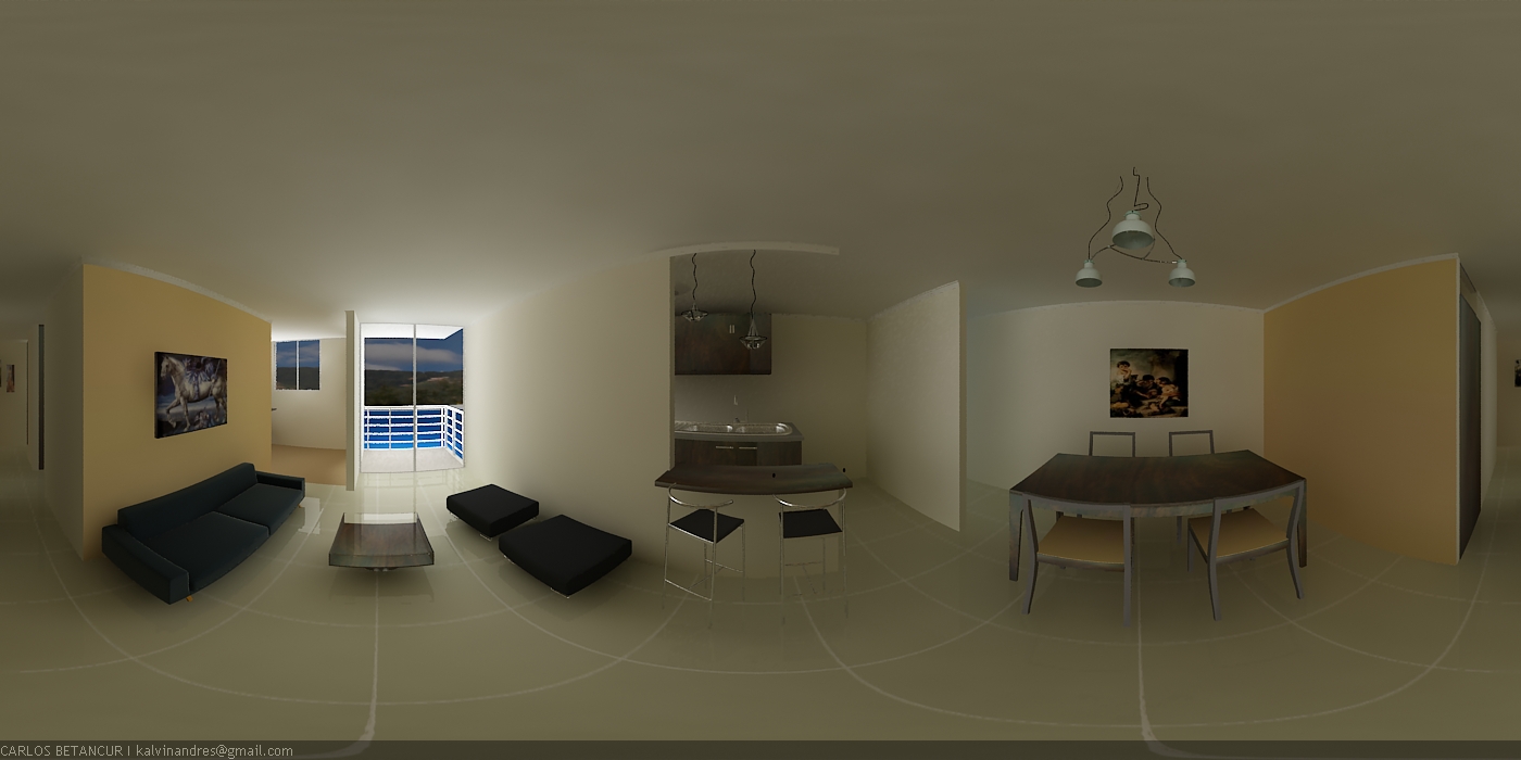 Kalvin, como ya dije, el problema del panorama esférico es que no se puede usar la cámara Vray que yo sepa. Hay que situar una cámara estándar (con lo que hay que retocar la iluminación).