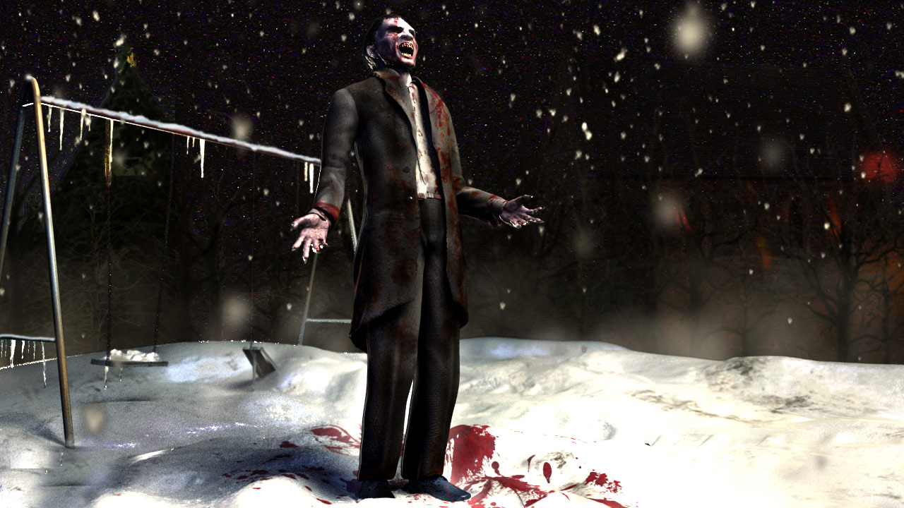 Vaya, que mal de Noel ¿no? Buen trabajo. Me uno a las críticas de la postura. Lo veo algo rígido. Yo adoptaría más una postura de hombre lobo, con las clavículas subidas y hacia detrás, y destancando el cuello y pecho hacia delante. Un saludo.