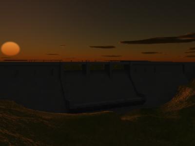 Y por eso el ejemplo que puse. Sobre una malla base con el aliviadero y los estribos, puedo añadirle bloques en función de la longitud de la presa, cambiar la barandilla, poner una caseta aquí, unas farolas determinadas, allá, y hacer un render rápido con un terreno en Carrara en un por favor.