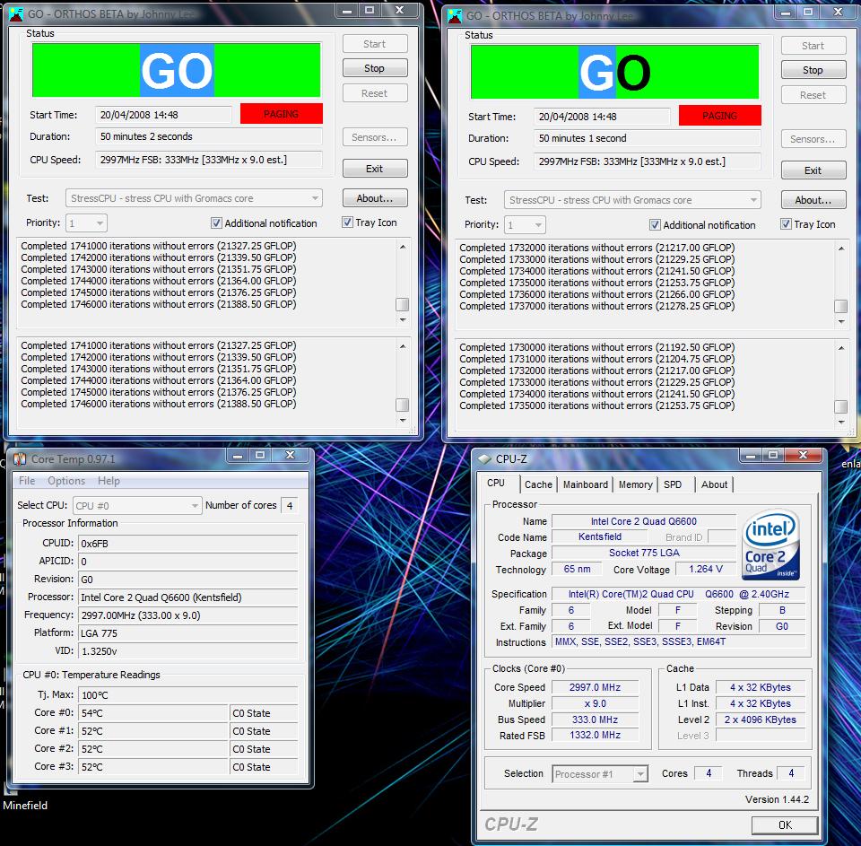 Estaba esperando a la salida de los yorkfield (los nuevos Quad) y ver que pasaba con ellos y como andaban de rendimientos, ciertamente, puedo esperar a que salgan, pero esperar para nada, pues es tontería. Dado que el modelo que pensaba pillar en la generación actual era el Q6600, el modelo actualizado, debería ser el Q9300 (2.5 Ghz), pero ya digo que no me gustaría esperarme y después descubrir que no van tan finos como deberían. En caso de quedarnos en la versión dúo, los candidatos serían el e6850 y el nuevo e8500.