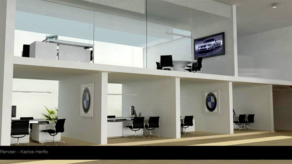 Publico la fachada de lo que será el taller de la BMW aquí en el DF, en la calle de New York y otros proyectos para BMW, uso 3d max9 Vray y psd. Saludos.