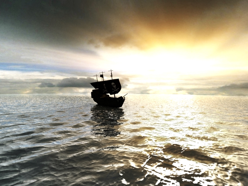 Aquí un barco pirata similar al Black Pearl. Hecho en 3dsMax 8 y renderizado con Mental Ray.