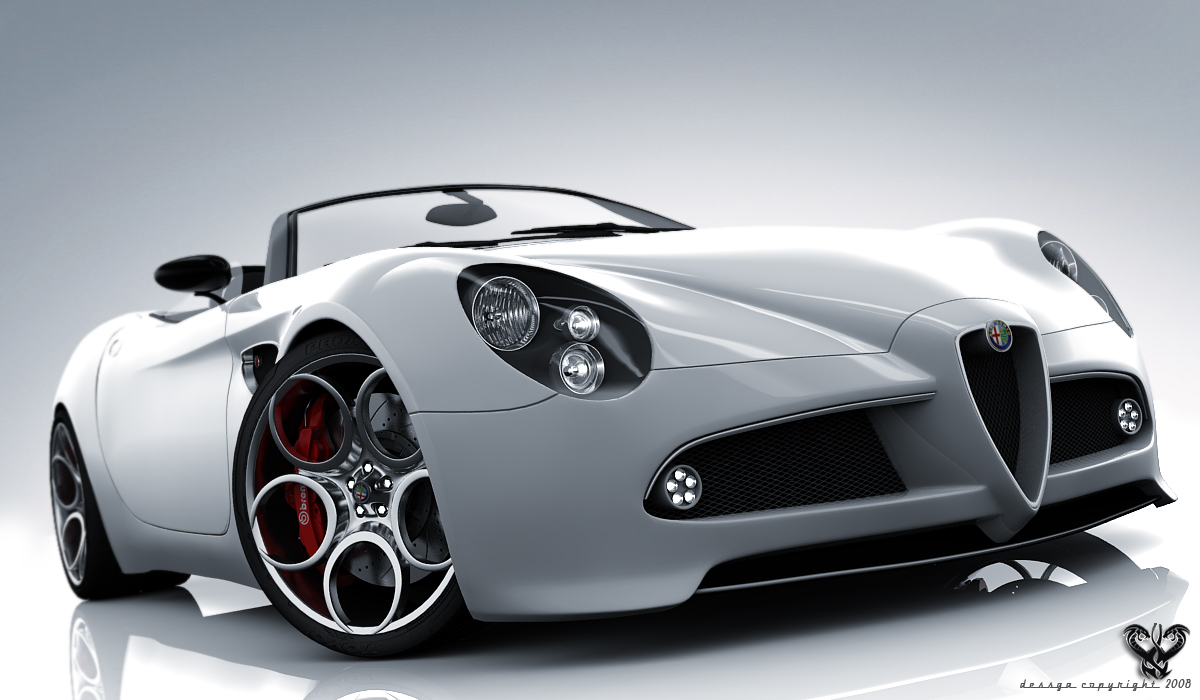 Bueno mucho, quiero compartir con ustedes la más reciente imagen que he hecho se trata de un alfa romeo competizione c8 spyder en Studio, creado en 3dsMax + Vray, tiempo de render 38 minutos con una máquina AMD x2 4200 2 Gb RAM.