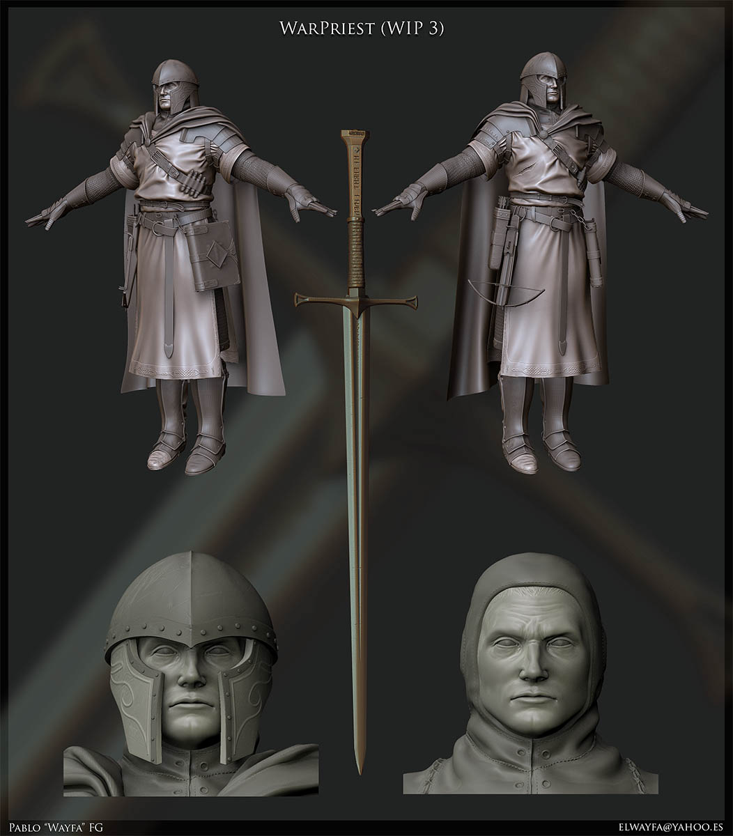 Esta de pm. Sólo una cosa no me convence. El Yelmo es demasiado grueso y si vas a hacerlo de metal (como sería lógico), cuando esté con texturas dará la impresión de ser muy, muy pesado.