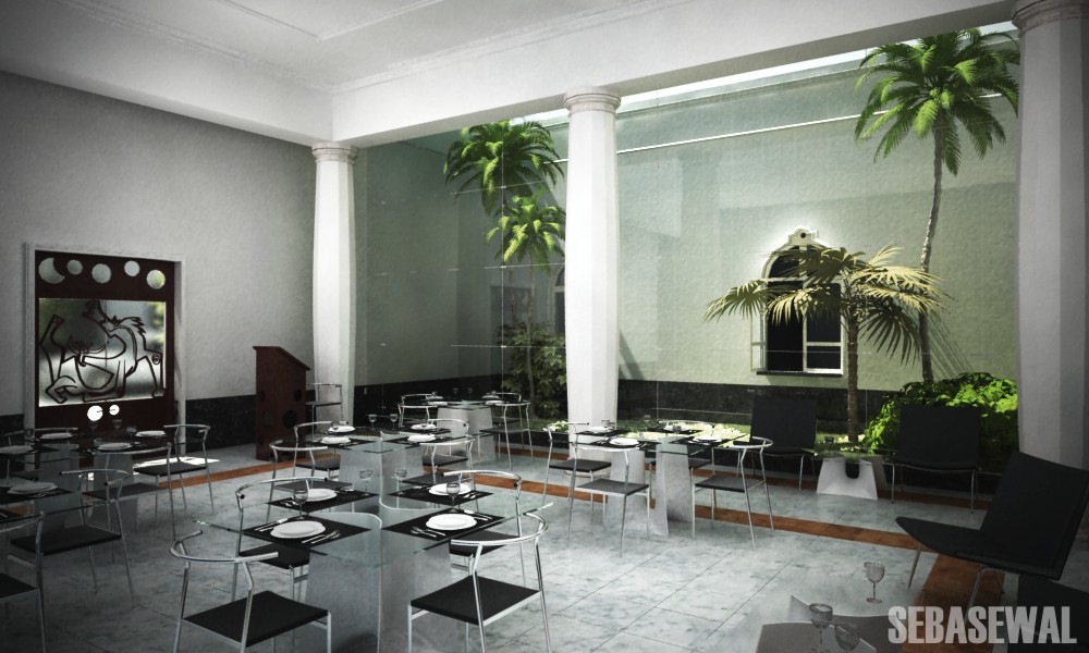 Hola Sebas: Me encanta y me convence el resultado. He tardado un buen rato en encontrar un posible gazapo: Si el patio de las palmeras esta principalmente iluminado por luz solar, creo que hay un foco que llega hasta el arco de la ventana con demasiada fuerza, con lo que a mi entender da protagonismo a la ventana sobre el resto.