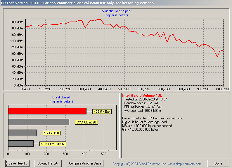 2º - 2x320 Gb 7200.10 (16 Gb) ambos raid tienen más de 60% ocupado, siendo ambos raid bastante rápidos, las diferencias de tiempo son enormes: