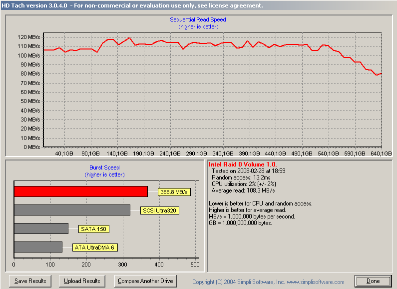 Con el raid 0, ganas en ancho de banda, pero pierdes un poco en tiempo de acceso (unos 2ms de media).