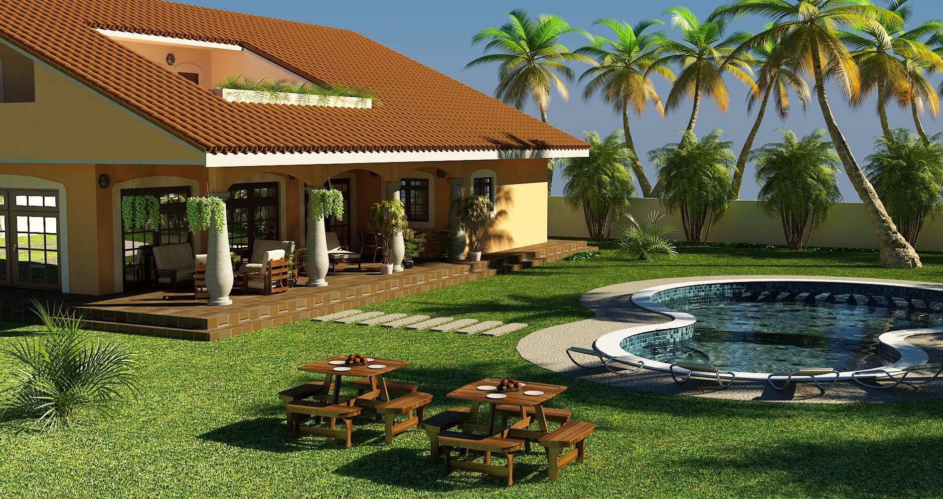 Me parecen buenos renders, si bien tengo la impresión de que en el primero se aprecia un noise general que en un principio confundí con la textura de aplicada en las paredes, pero que también se destaca en la madera de la ventana de fondo y sobre las texturas de los muebles, también tengo impresión de que de que el piso está fuera de escala, las juntas me lucen muy anchas y profundas, en la segunda imagen se agrega que los cristales de la puertas se ven muy reflexivos, me agrada cómo se ve la piscina y tu textura de grama me agrada mucho (gracias por publicar el mapa de displacement) lo que si veo es que, aun cuando colocas un fondo montañoso al background todavía se siente todo suspendido sobre el aire, quizás trabando un tramo de superficie más, allá de la límite de la pared (un tanto de espesura aquí, allá serían un buen toque). Pero bien todo esto lo menciono por comentar tu trabajo, en general se ve bien y me gusta.