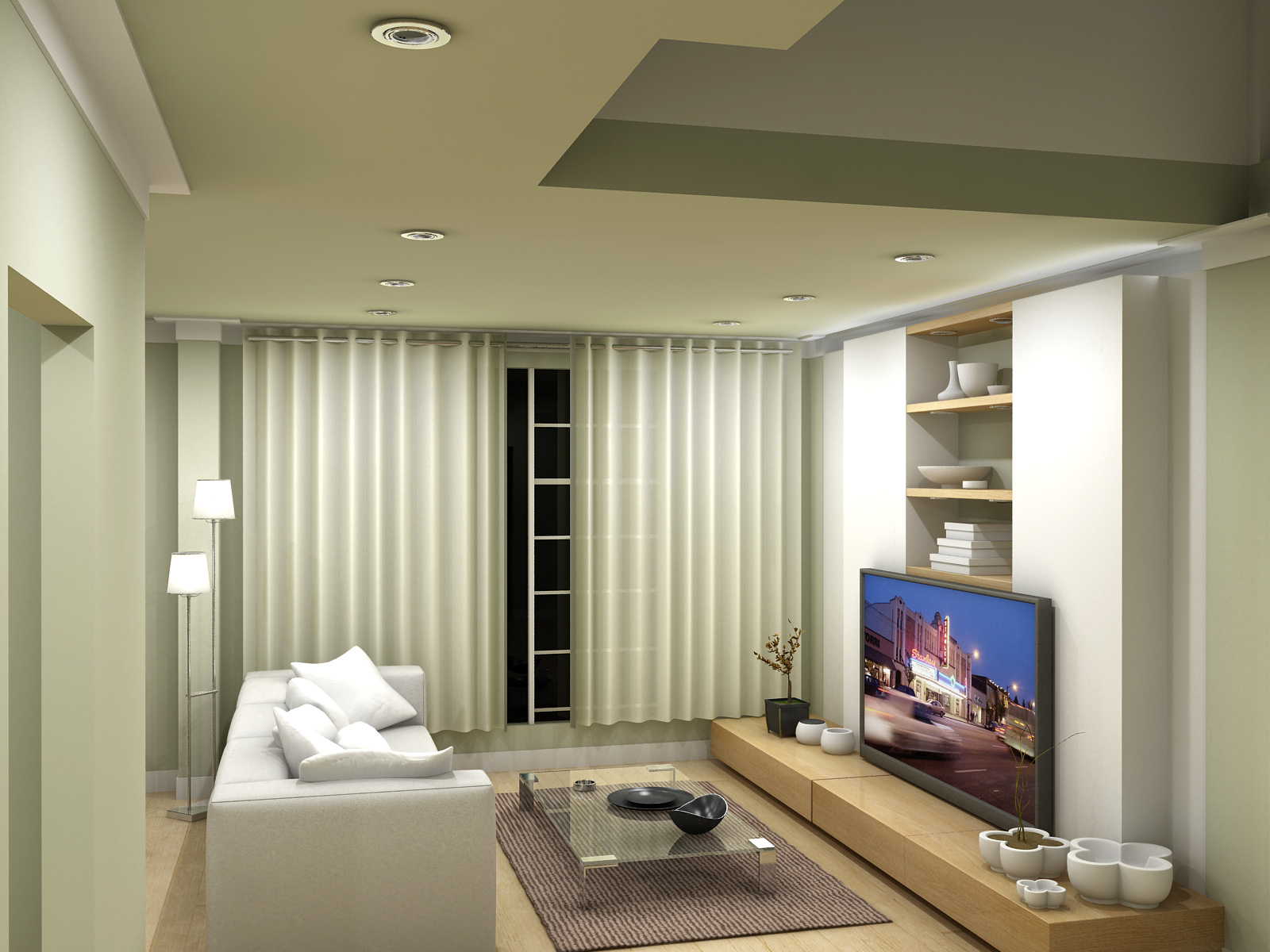 Pongo un interior de la sala del mismo proyecto, que iluminación les parece mejor.