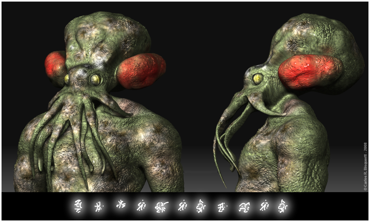 Ver el timelapse de the biker, por rik baker (que está en gnomonology por si alguien más lo quiere comprar) me inspiró para crear este personaje que parece un pariente del señor Cthulhu. Le llamaremos tululu para evitar problemas de copyright.