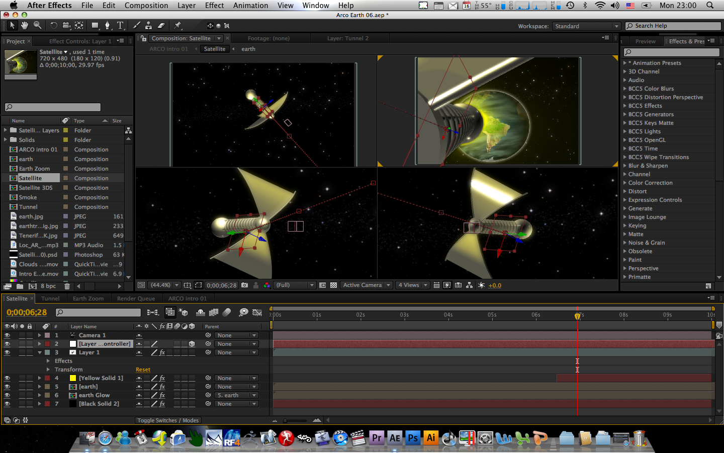 La gran pregunta ahora al igual que yo me la hice al tener el CS4, aja ya lo tengo y ahora como hago? Este no te permite importar directamente un 3ds primero nuestro modelo debemos guardarlo en este mismo formato y abrirlo en Adobe Photoshop CS4 luego que tenemos nuestro 3d allí podemos cambiar texturas y demás al igual que rotarlo y moverlo más no animarlo, entonces guardamos ese.psd y este es el que abrimos en After Effects como una composición allí nuestro objeto 3d lo podemos animar, rotar y demás cosas al igual que en el programa 3d que usamos lo único es que para poder animar debemos animar es un null object que viene en la composición importada no directamente el 3ds.