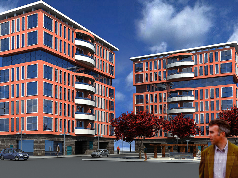 Aquí os dejo un exterior para que opinéis, y mi duda a continuación: Utilizo 3dstudio 8 y Vray, los edificios son de ladrillo, hay puesta una textura con Bump, pero no consigo que se vean claros los ladrillos, he probado de todo, ¿Qué puedo hacer mal? ¿tengo que darle una resolución bestial para que se aprecien? ¿es el antialiasing? Cuando quito el Indirect Ilumination se aprecian perfectamente, pero las sombras me quedan negras total. Gracias.