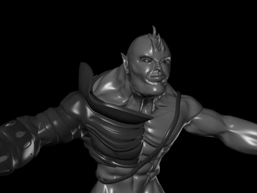 Si tengo el DVD y me he basado en el, aunque no es el mismo modelo y las proporciones son diferentes. El que ellos tienen está hecho con box modeling tutorial y el mío era creado con muchas curvas Nurbs y luego a subdivisiones, aunque si me base en la anatomía de su modelo para aprender y cuando acabe decidí crearle armadura y hacerle gladiador.