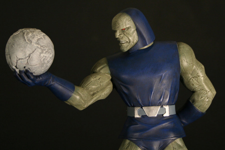 Darkseid es un pedazo-bestia. Mucho más enorme tío, pero enorme enorme. Tiene que intimidar mucho más. A mi parecer, tiene que ser un físico deformado, como ejemplo las manos. Unas manos enormes, un torso desproporcionado y unas facciones mucho más exageradas.