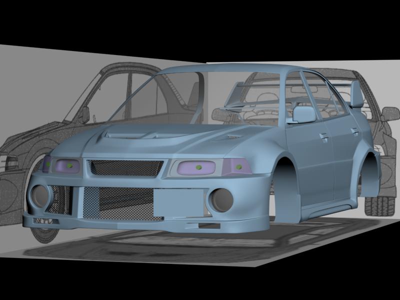 Que al 3dseros, aquí les dejo el último trabajo, se trata de mi segundo auto, el primero fue un Datsun 240z, bastante cuadrado y por tanto fácil de modelar, así que, ahora decidí experimentar con un evo vi que tiene una cantidad de molduras bastante interesantes que lo hacen más complicado, estoy por terminar en estos días con el modelado del chasis y pasare a los rines, comentarios y críticas bienvenidos, saludos.