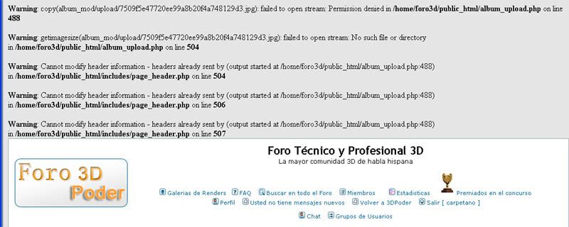 Veo que habéis ubicado el vínculo de galería bajo el avatar, pues bien aprovechando ese cambio decidí actualizar mi galería, pero al enviar la imagen me salen unos mensajes extraños, y la imagen no se representa. Quizás es error mío.