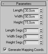 1. Creemos una caja en el visor left con las siguientes dimensiones 30, 90, 15 y segmentos 3, 5, 1, le damos clic derecho a la herramienta mover y ponemos x=0, y=0, z=0.