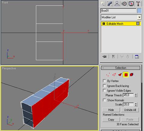 3. seleccionamos el sub-object polygon y ahora selecciona todos los polígonos del lado derecho de la caja.