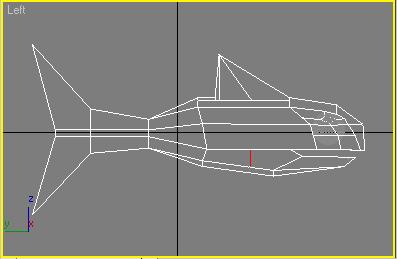 13, vamos ahora por la aleta dorsal, en la vista top cortamos (de la forma que ya sabemos) algo así: