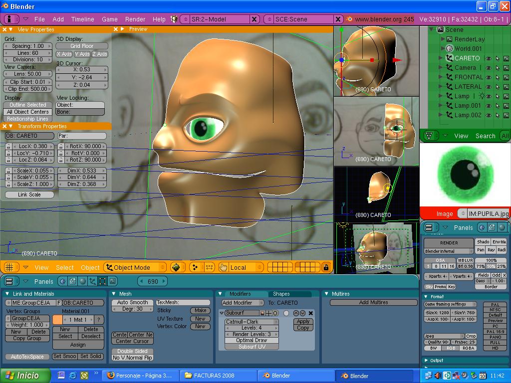 Y pon imágenes del modelo suavizado, porque así en bruto al menos yo no me hago a la idea de cómo va, aunque creo que progresas adecuadamente. Saludos y ánimo.