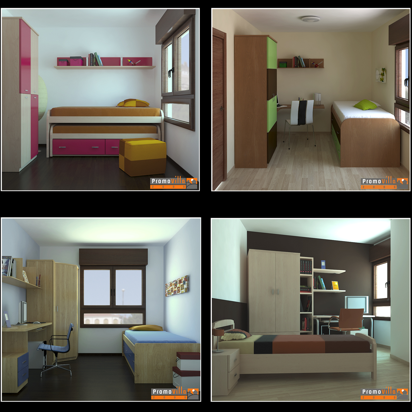 Por fin. Os dejo los renders principales. De estos han salido casi todas las imágenes necesarias para crear un DVD interactivo donde se puede ver todo el detalle de la promoción, desde la memoria de calidades hasta una visita virtual de los 10 modelos de viviendas que hay, con sus respectivos tipos de mobiliario y calidades, a elección del cliente, vamos, que lleva cuarentamil menús.