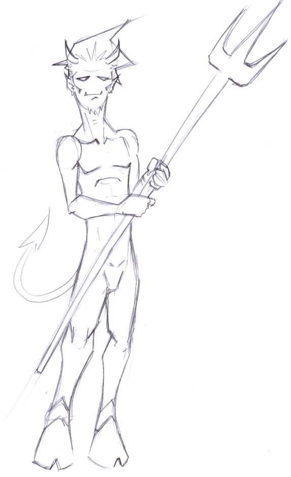 Posdata: añado 4 garabatos así hechos a velocidad máxima, con la tía no habré empleao ni 2 minutos. Y con el demonio con el tridente de findus, poco más. Creo que en lo más básico y cutre es donde mejor se ven los fallos (aparte de que no tengo ni zorra de hacer armas:p).