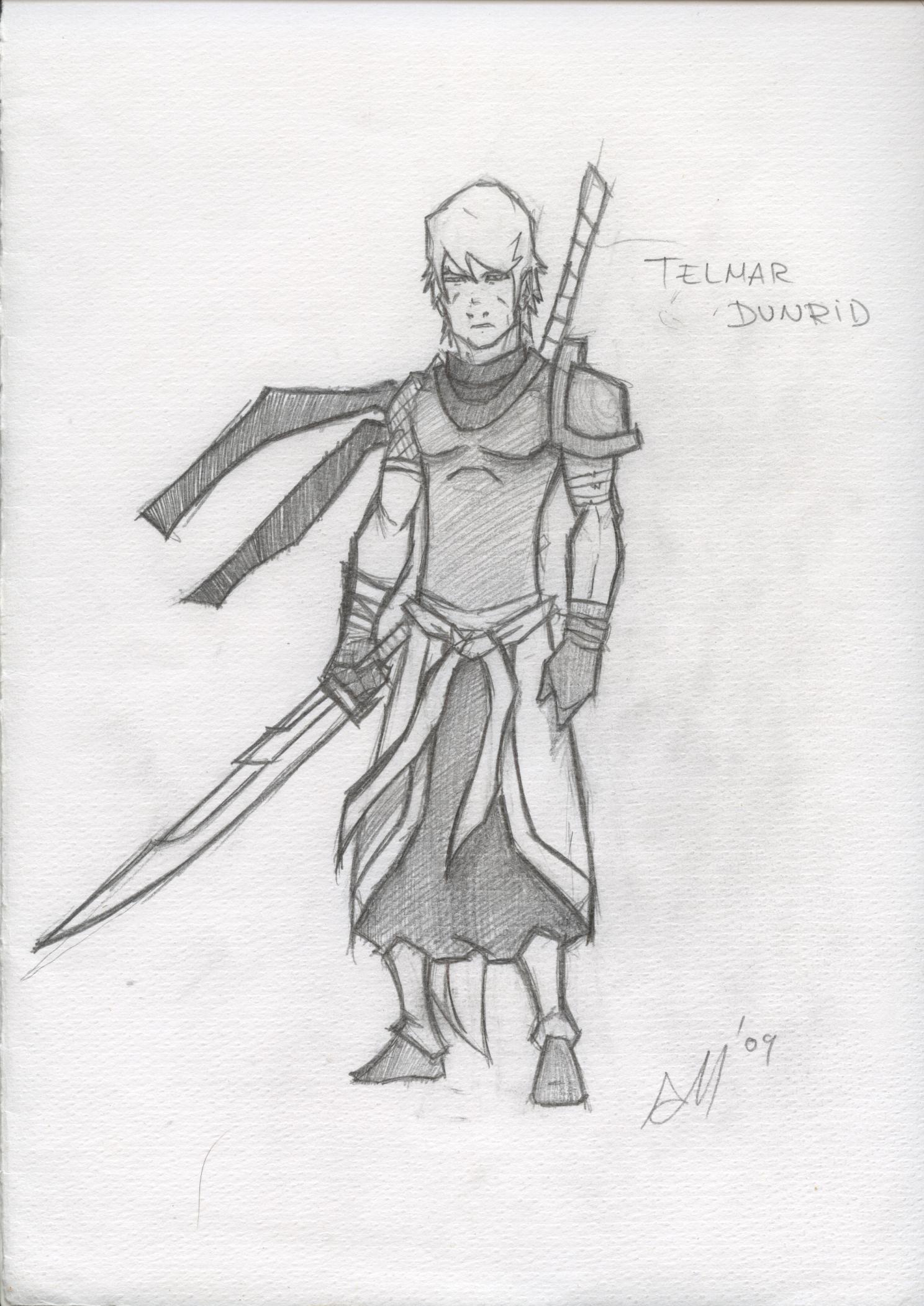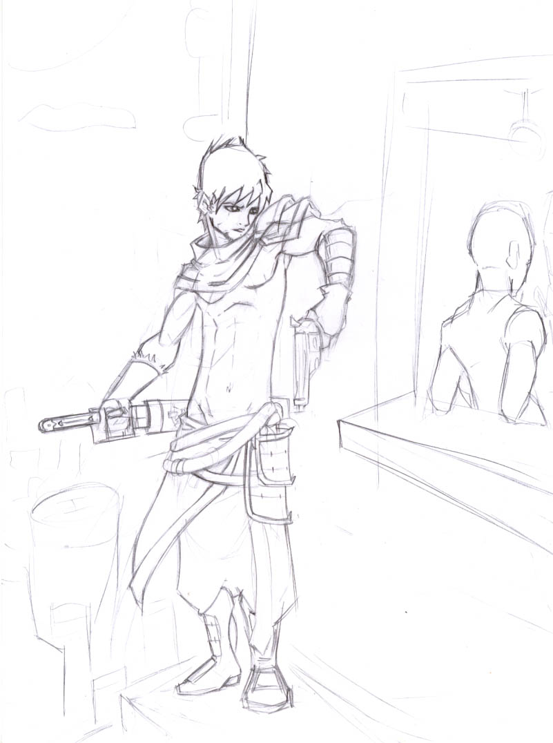 Muy bueno el dibujo a medio hacer del personaje con la espada. Me gusta la perspectiva del brazo, aunque estaría mejor acabado claro.