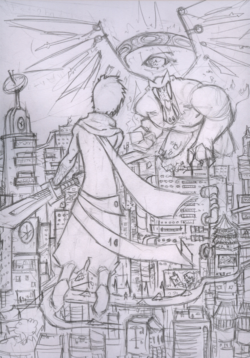 Hola Mailus, me alegra que sigas tan activo, vi uno de tus dibujos donde aparece uno de tus personajes volando, y de fondo se ve una ciudad desde arriba.