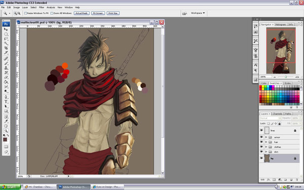 Aquí dejo a este, me he parado porque empezaba a cagarla, quiero consejos por favor. Aparte de los abdominales, que son 4 rayas mal hechas, hay cosas que van fatal, y si me podéis echar un cable para remediarlas, es solo medio cuerpo lo que voy a hacer realmente, pero quiero que me salga bien.