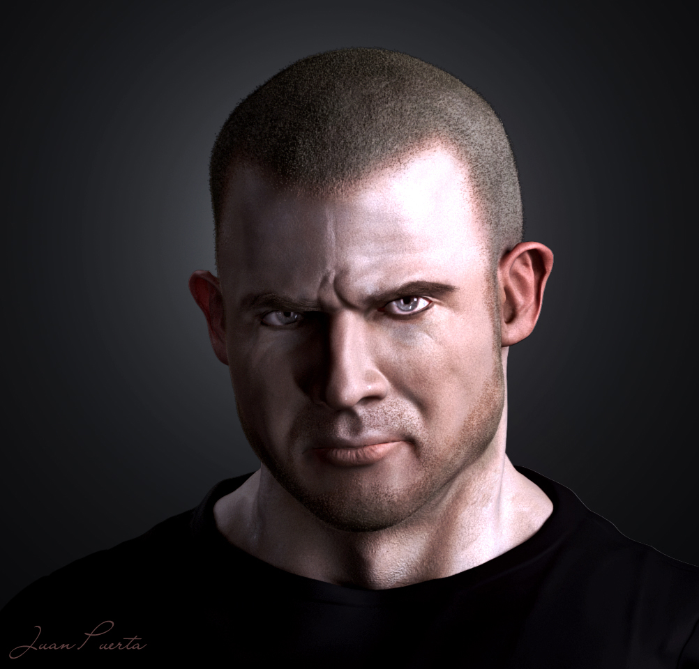 El parecido es muy bueno a Lincoln burrows, te felicito por el modelo, es muy bueno, concuerdo con los demás, lo terminas para verlo, si te digo algo, ten mucho cuidado con los materiales finales, para que no pierda parecido.