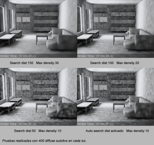 auto search Dist: calcula automáticamente el radio de uso de los Photons en base a la precisión que tengamos asignada en max density..