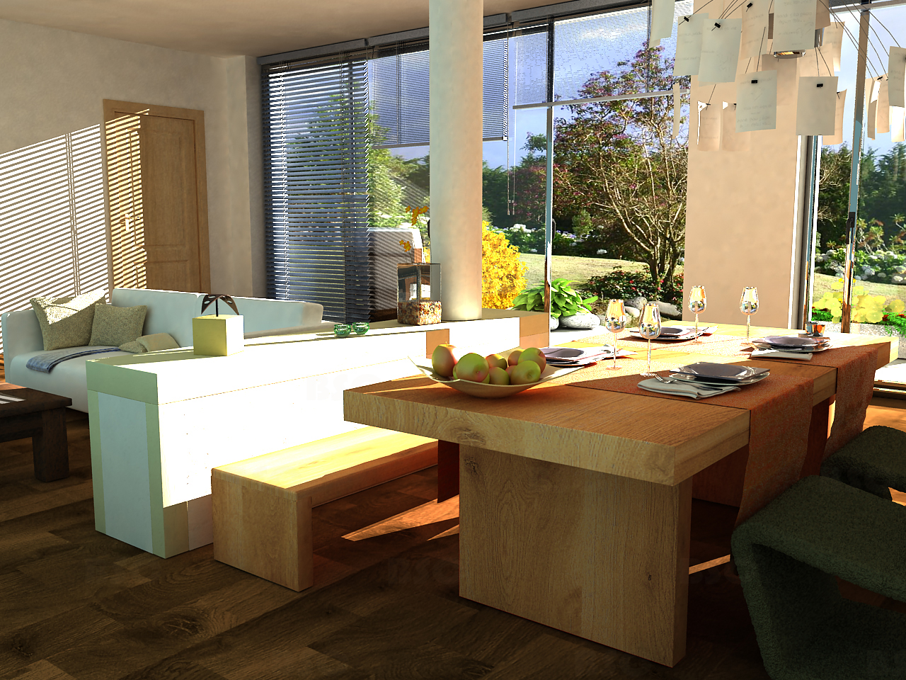 Hola kanandras, se ve muy bueno, aunque creo que el interior se ve oscuro, quizá con un ambiente más claro se vería mejor, sobre todo lo que se ve en primer plano (no sé si es que tú intención era dar ese aspecto que muestras), así se apreciaría mejor todos los detalles que has incluido, como mobiliario, platos, copas, etc.