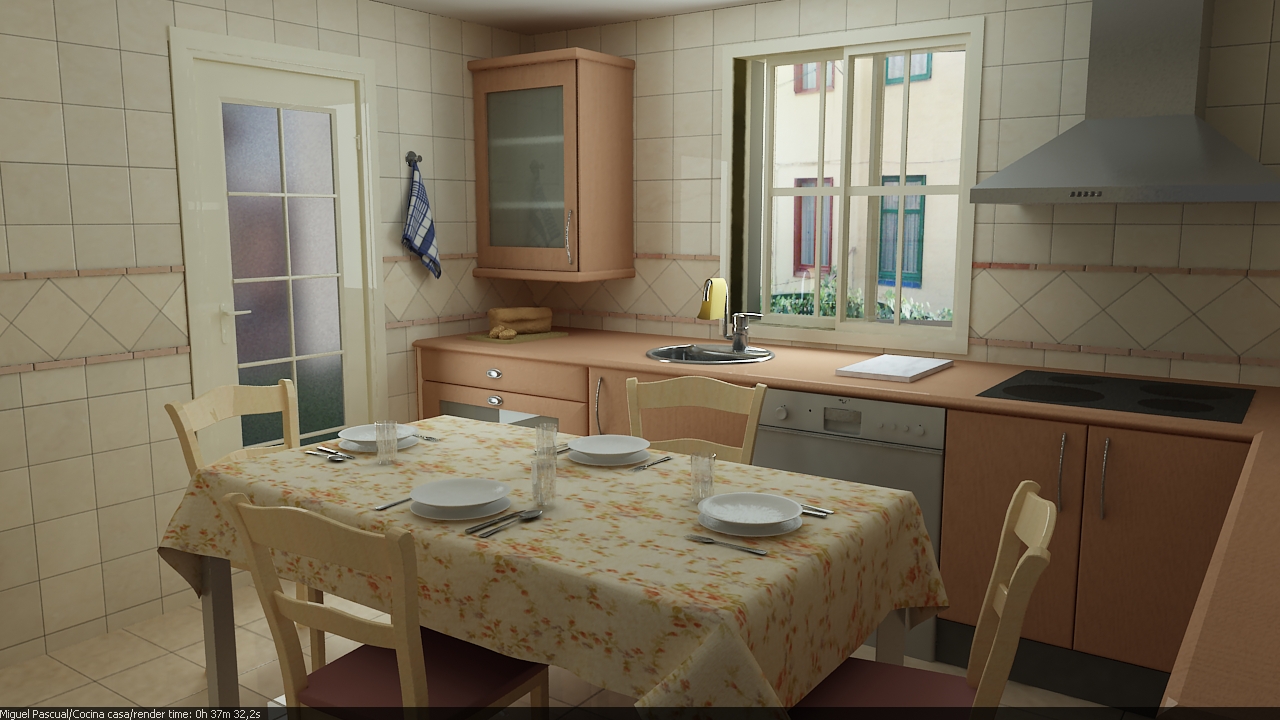 Pues aquí os dejo el último render que he hecho, se trata de la cocina de mi casa, a ver qué os parece. Se admiten sugerencias para mejorarla y críticas constructivas. Un saludo a todos.