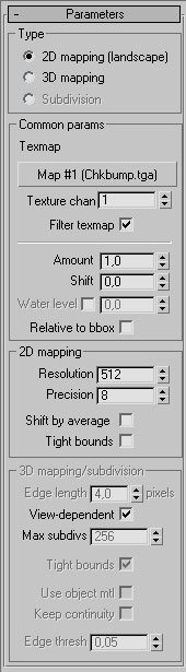 (este panel lo podemos encontrar dentro de la pestaña modificadores de objeto, Vray displacement mod).