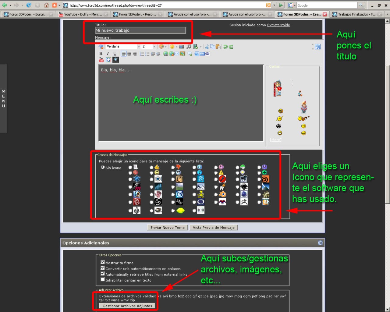 Una vez allí, creas nuevo tema (ojo, nuevo tema, no contestar a uno ya creado), subes tu imagen y comentas como la has hecho, que te queda, que quieres mejorar.