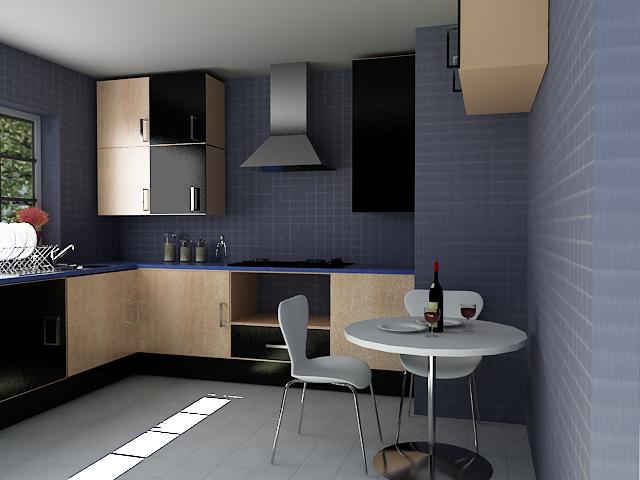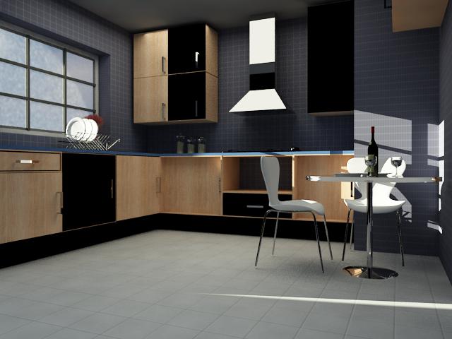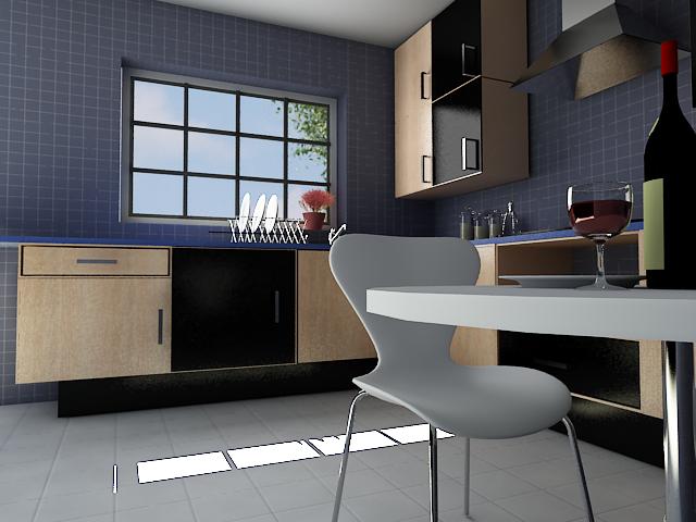 Se ve bastante mejor alma2411, en particular me gusta la posición de la cámara en las dos primeras imágenes. Te recomiendo subir las subdivisiones al reflejo del material negro de los gabinetes, los reflejos tienen un poco de ruido. Con un valor entre 20 y 30 se debe ver mucho mejor, aunque debes tener en cuenta que eso aumentara un poco el tiempo de render.
