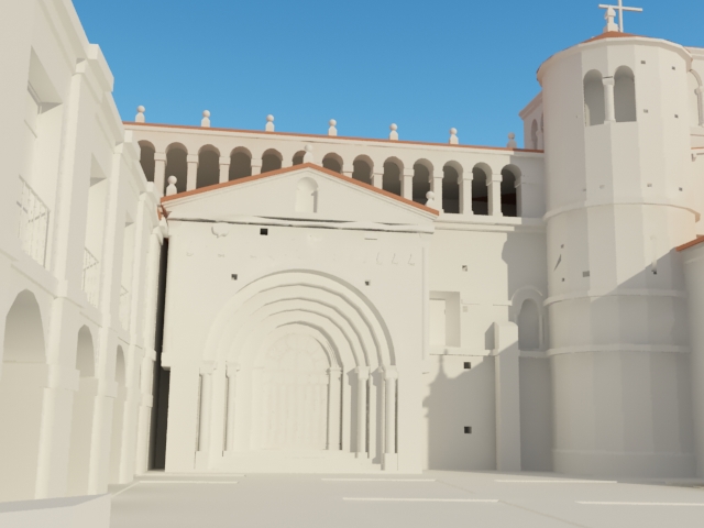 Me llama la atención también la carencia de luz en los interiores de los arcos, ya que no hay fuera una iluminación intensa du luz solar (no hay sombras muy contrastadas, parece más bien un día seminublado como han dicho por aquí arriba) la iluminación entonces debería ser más hogenea por toda la escena, por lo que se tendría que ver por lo menos un poco más lo que hay debajo de los arcos.