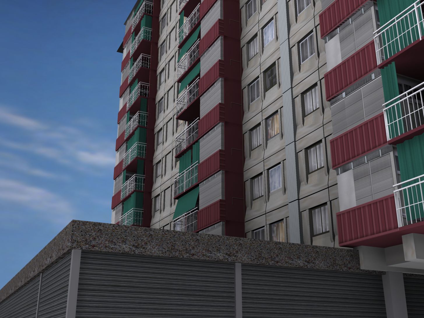 Intente darle volumen, pero quedaba todo realmente extravagante, igualmente esos edificios son solo el telón del render.