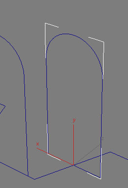 En esa pared inclinada quiero una ventana, pero no cuadrada sino con arco, como me resulta muy difícil hacer esto directamente sobre la pared extruida (el arco de la ventana), mediante cuts o connects, lo que hago es crearme otra Spline con la forma de la ventana, la cual pretendo alinear con esa pared inclinada, de modo que operando con ambas Splines al final consiga una Spline la cual sólo tenga que extruir para que tenga ya la ventana incorporada.