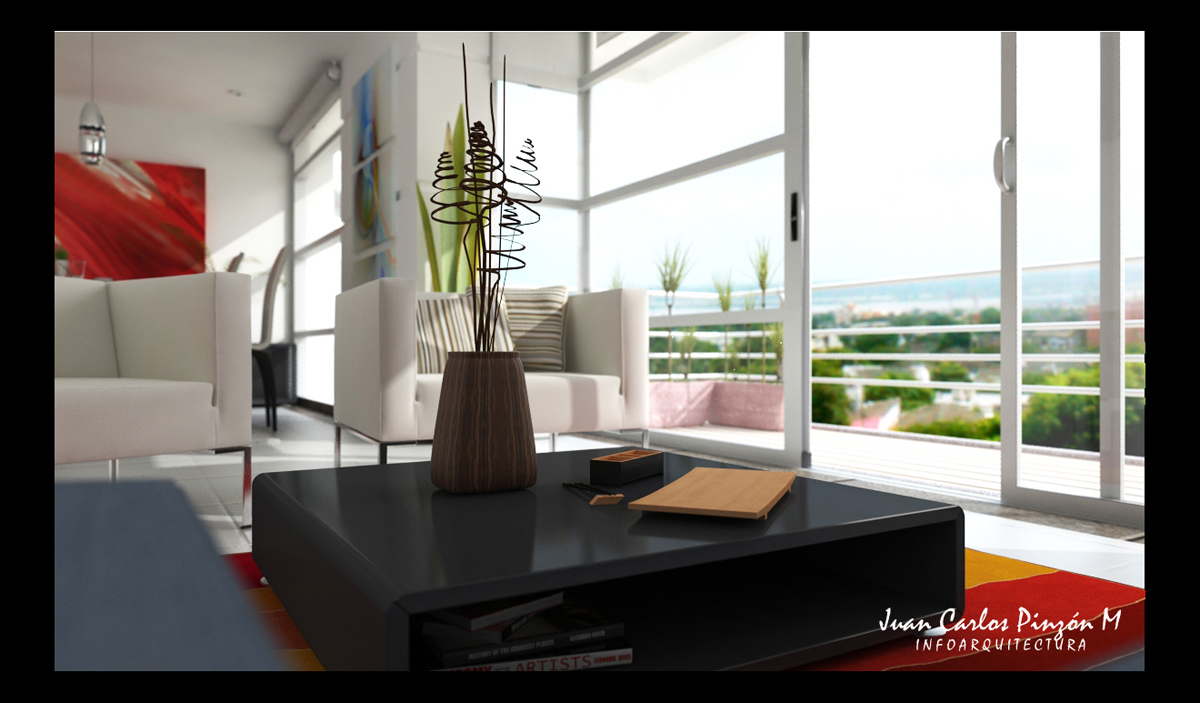 Excelente trabajo. Realmente un interior muy currado y conseguido. ¿El desenfoque ha sido generado en 3ds Max o ha sido posteriormente realizado con Adobe Photoshop?