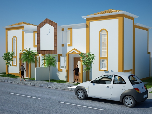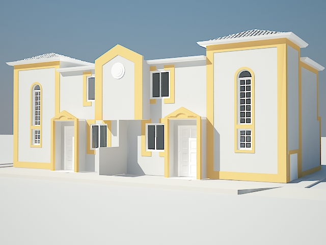 Otro pequeño avance, estoy seleccionando los materiales, y le arregle el solido del lateral que aparecía negro. Otra prueba más, cambien el material de vidrio, y material en las tejas y pasto.